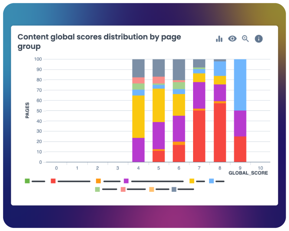 The AI-driven feature identifies what’s holding your content performance back (duplication, structure, relevance, optimization) and delivers clear, prioritized improvement recommendation across your site.