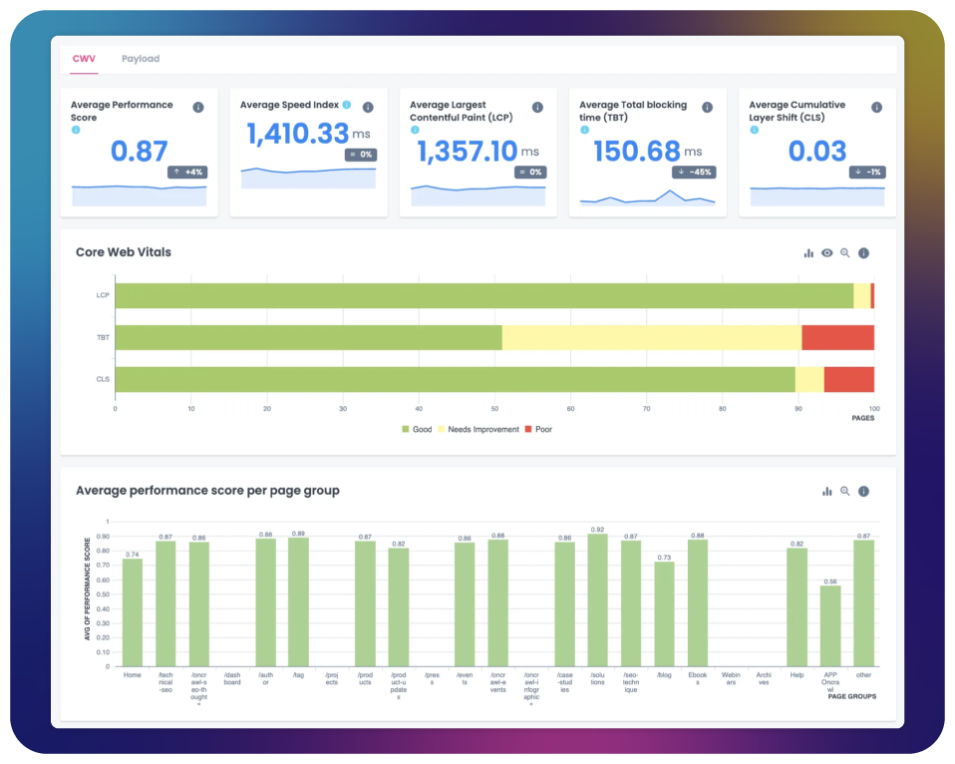 The Performance Lens measures load times and user experience signals (Core Web Vitals) that influence whether your pages are considered reliable sources. Resolve performance issues efficiently and increase your chances of appearing in AI summaries and search results.