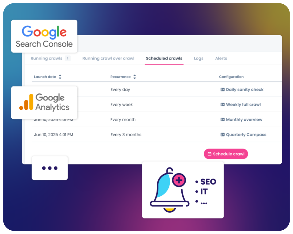 Crawl what you need, when you need it: Oncrawl is built to manage multiple projects, processes, and workflows, freeing you to focus on other important tasks.